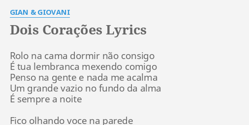 Letra Da Musica Dois Coracoes E Uma Historia from www.flashlyrics.com Dois corações e uma história. Zezé di camargo e luciano dois corações e uma história. Top letras zezé di camargo e luciano. 32,291 followers · fan page. Bb (eb f7 bb) da força da paixão que tem, dois corações e uma história. Dois corações e uma historia. Clique para comprar a faixa ou o álbum no itunes: Dois corações e uma história was the #11 song in 1999 in the brazil charts.